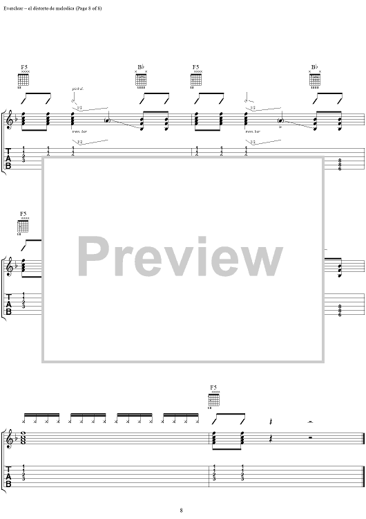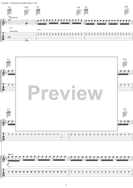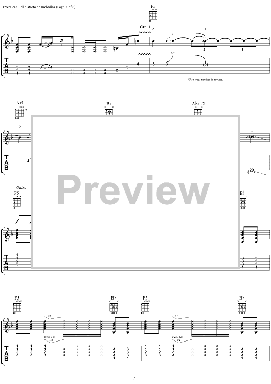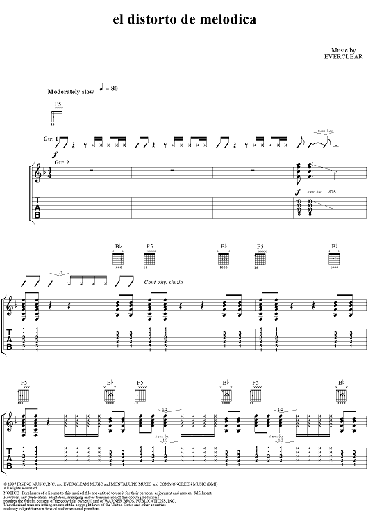 Digital Sheet Music for El Distorto de Melodica by Everclear scored for Guitar Tab/Vocal; id:113791