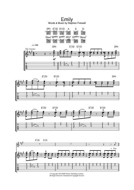 Digital Sheet Music for Emily by Stephen Fretwell scored for Guitar Tab; id:385618