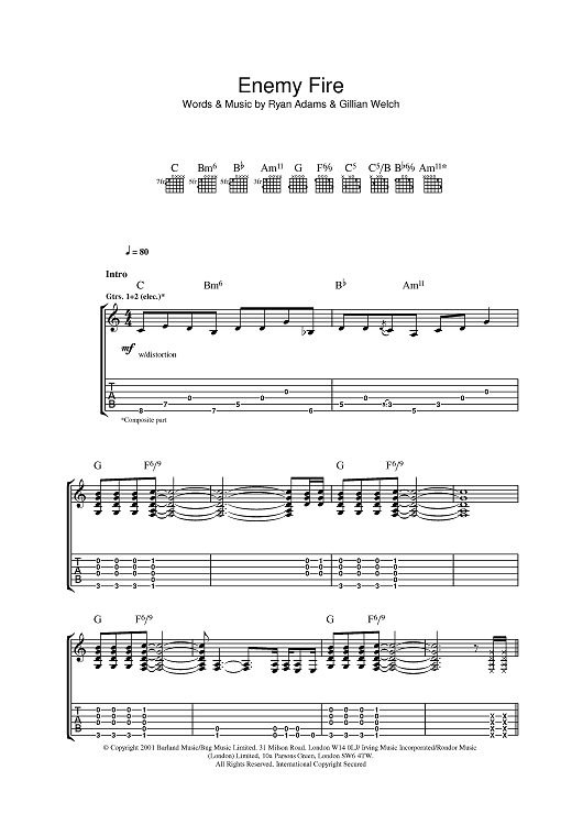 Digital Sheet Music for Enemy Fire by Ryan Adams, Gillian Welch scored for Guitar Tab; id:384201
