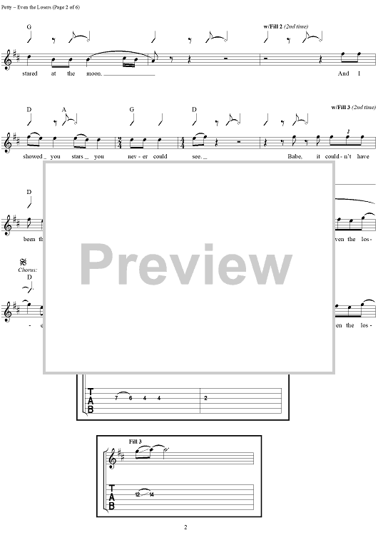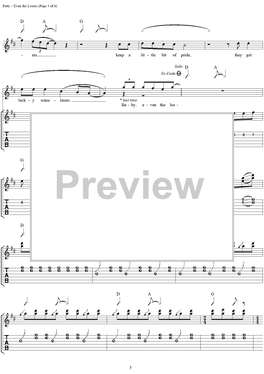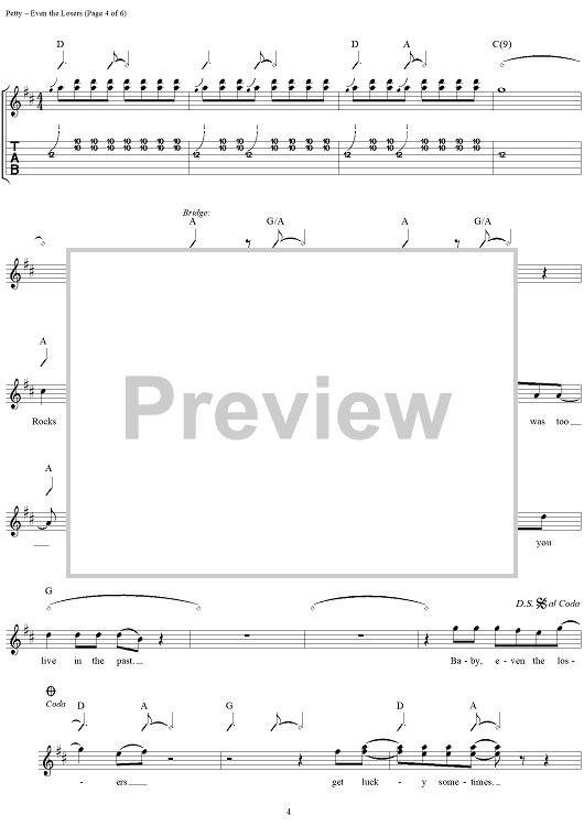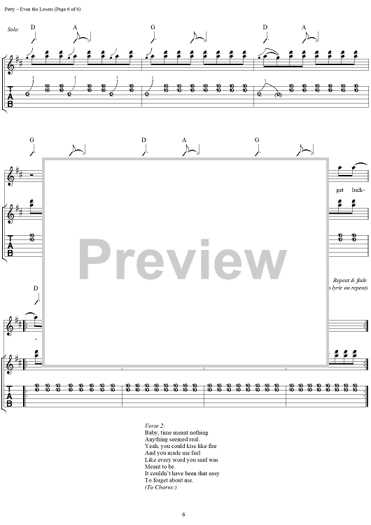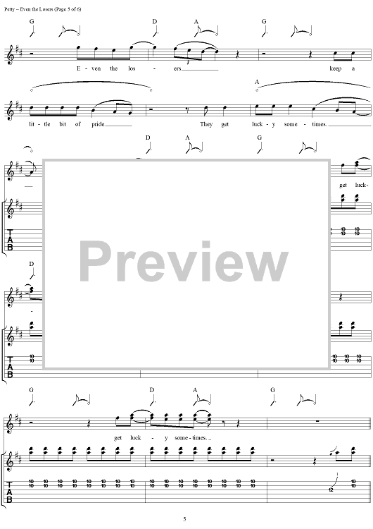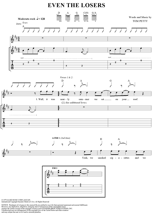 Digital Sheet Music for Even the Losers by Tom Petty scored for Guitar Tab/Vocal; id:120895