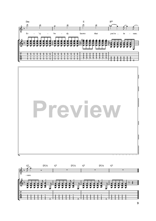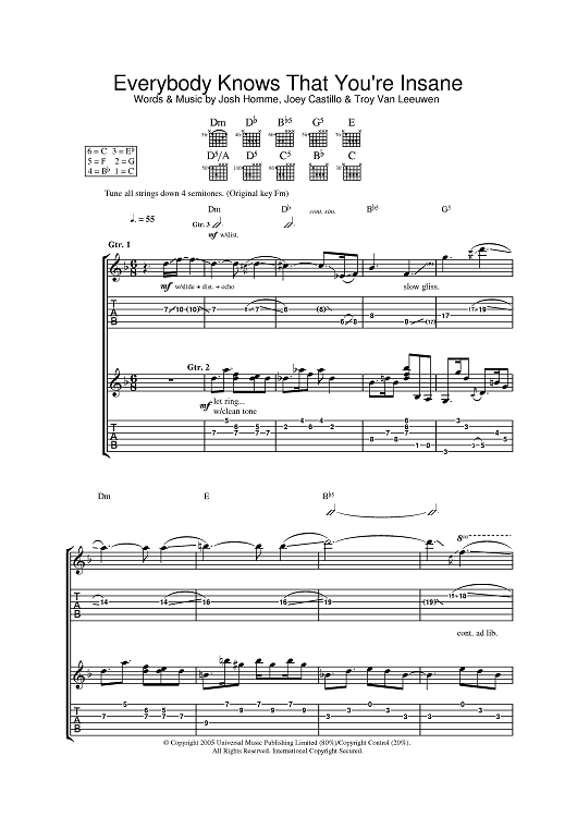 Digital Sheet Music for Everybody Knows That You Are Insane by Joey Castillo, Josh Homme, Queens of the Stone Age, Troy Van Leeuwen scored for Guitar Tab; id:385429