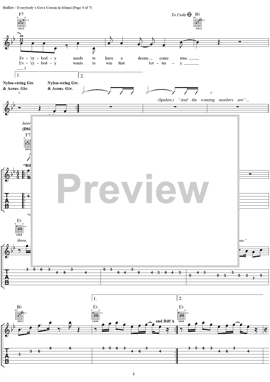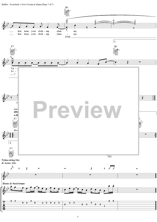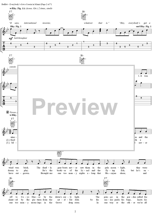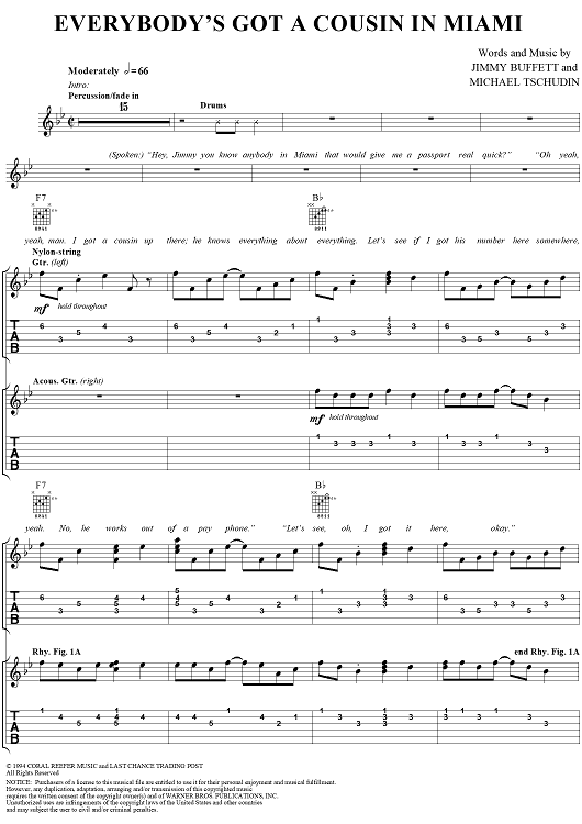 Digital Sheet Music for Everybody's Got a Cousin in Miami by Mike Taylor, Michael Tschudin, Jimmy Buffett scored for Guitar Tab/Vocal; id:284342