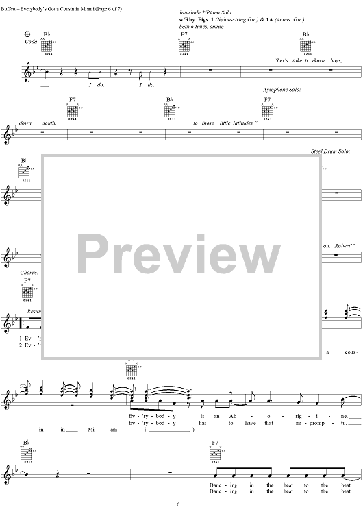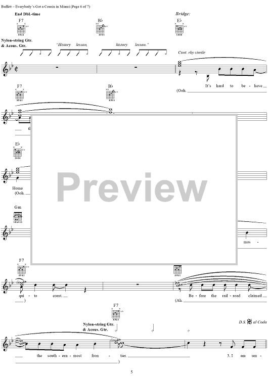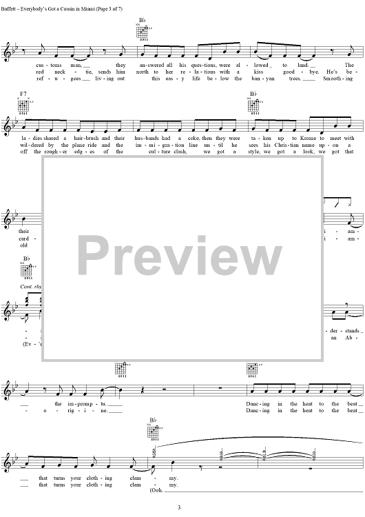 "Everybody's Got a Cousin in Miami" Sheet Music by Jimmy Buffett