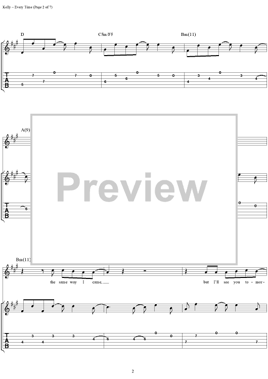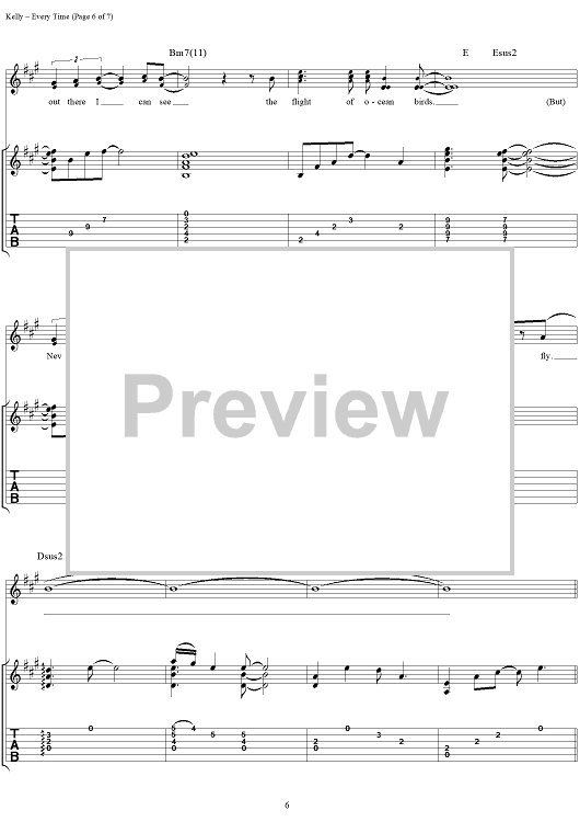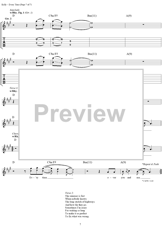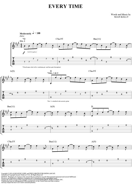 Digital Sheet Music for Everytime by The Samples, Sean Kelly scored for Guitar Tab/Vocal; id:249963