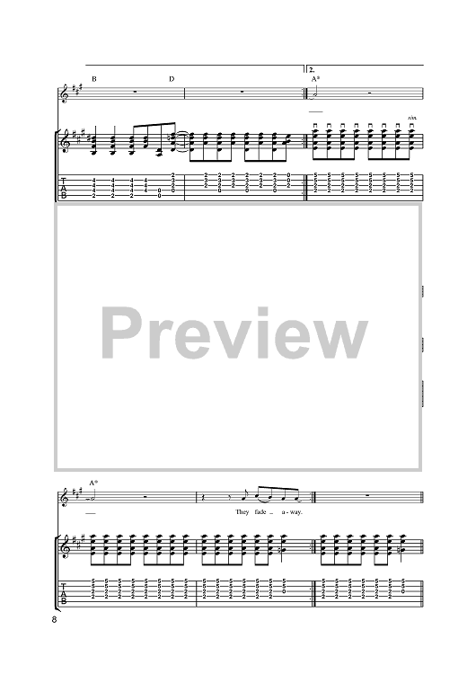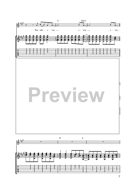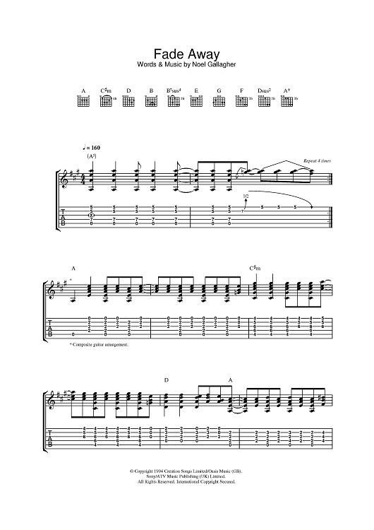 Digital Sheet Music for Fade Away by Noel Gallagher, Oasis scored for Guitar Tab; id:385591