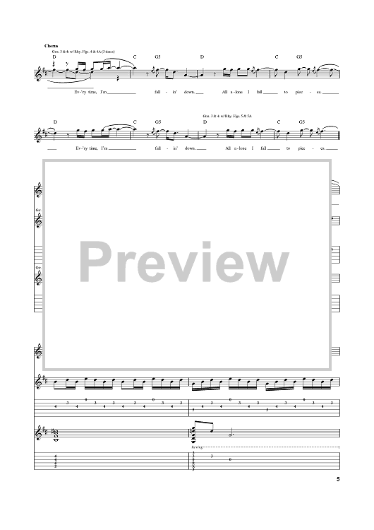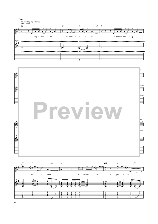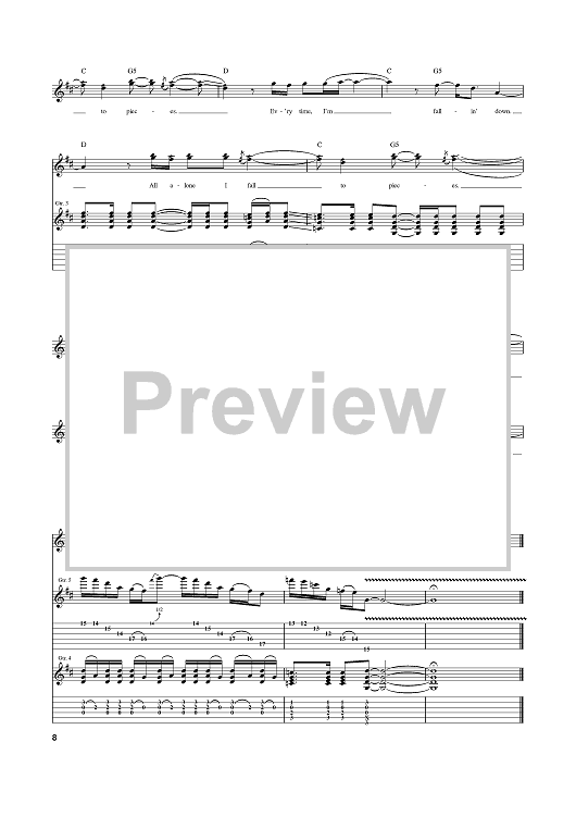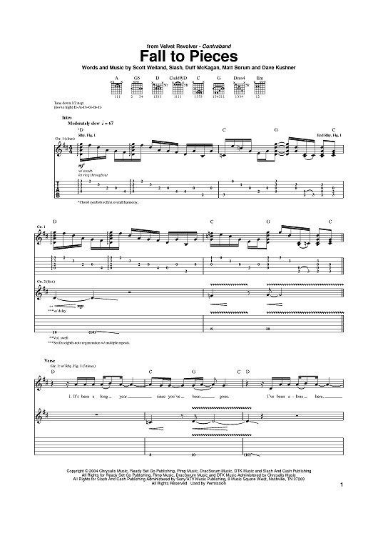 Digital Sheet Music for Fall To Pieces by Scott Weiland, Slash, Dave Kushner, Duff McKagan, Matt Sorum, Velvet Revolver scored for Guitar Tab; id:383509