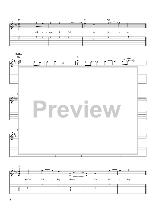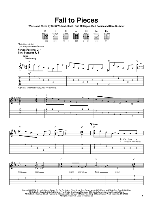 Digital Sheet Music for Fall To Pieces by Scott Weiland, Slash, Dave Kushner, Duff McKagan, Matt Sorum, Velvet Revolver scored for Easy Guitar Tab; id:385926