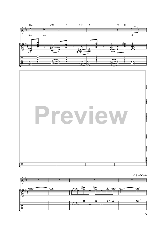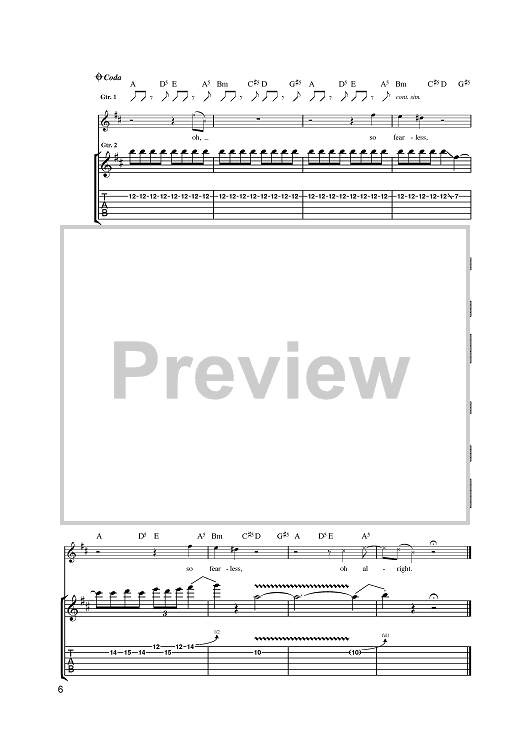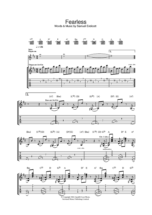 Digital Sheet Music for Fearless by The Bravery, Samuel Endicott scored for Guitar Tab; id:386380