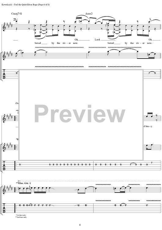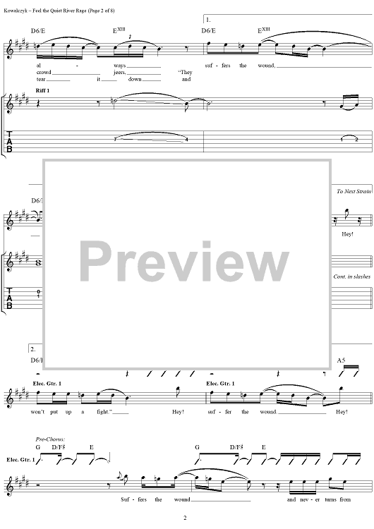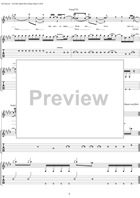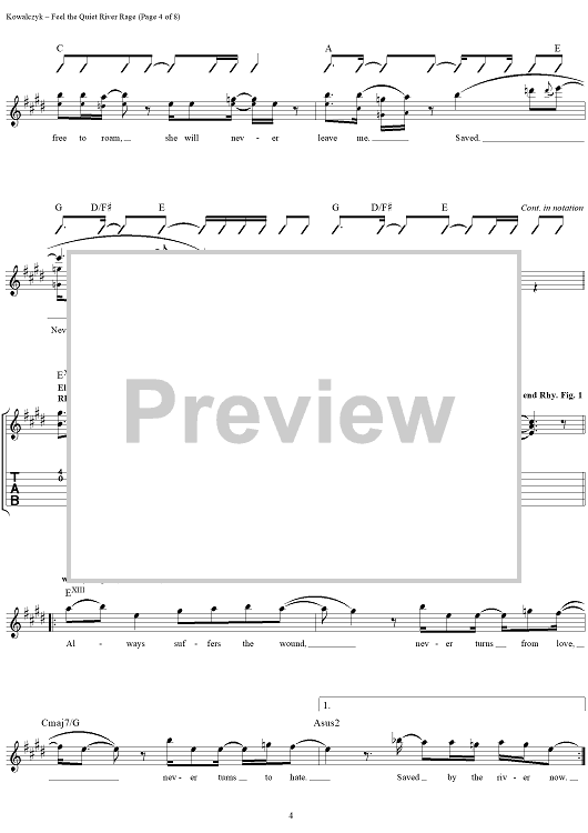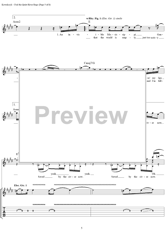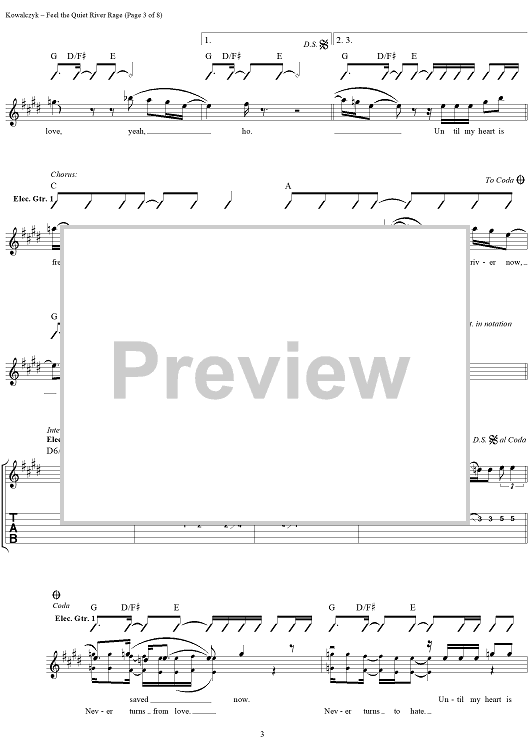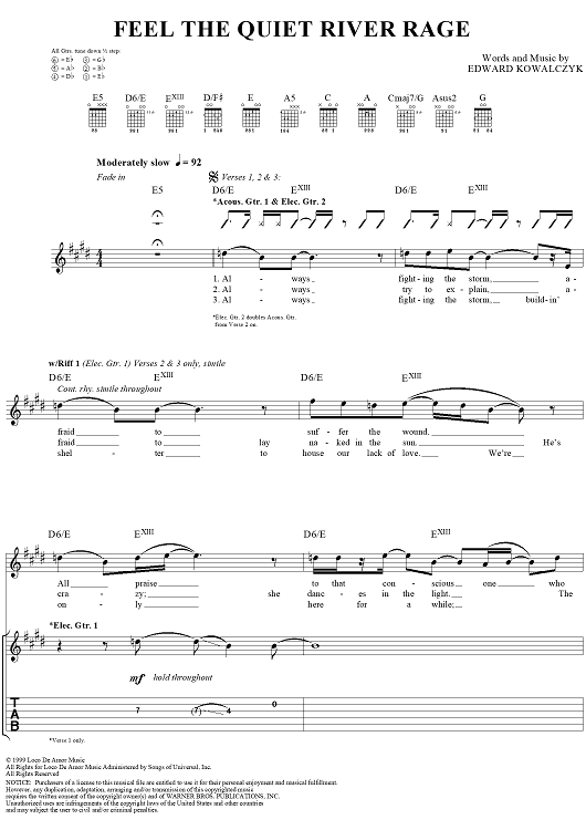 Digital Sheet Music for Feel the Quiet River Rage by Live, Edward Kowalczyk scored for Guitar Tab/Vocal; id:216764