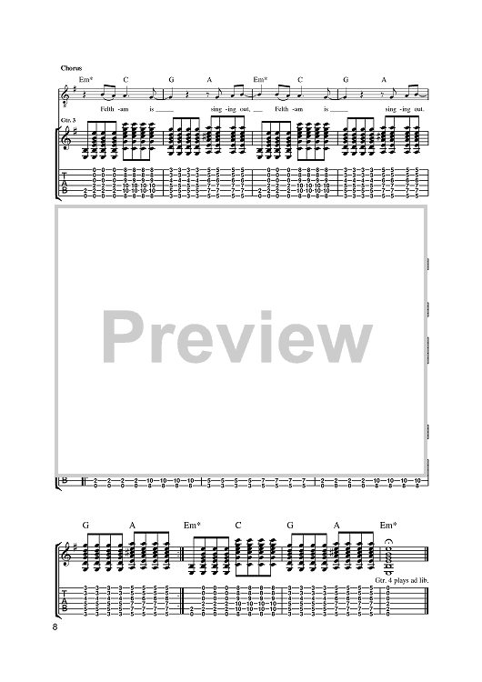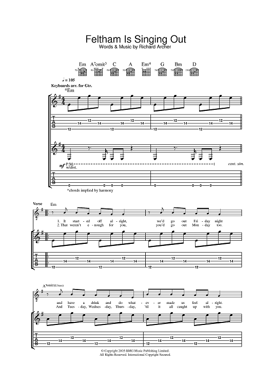 Digital Sheet Music for Feltham Is Singing Out by Richard Archer, Hard-Fi scored for Guitar Tab; id:387018