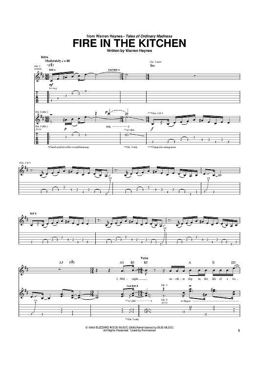 Digital Sheet Music for Fire In The Kitchen by Warren Haynes scored for Guitar Tab; id:371540