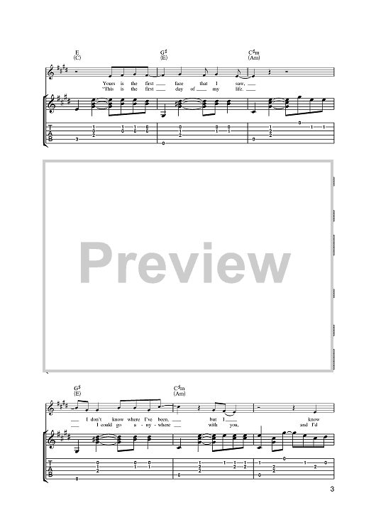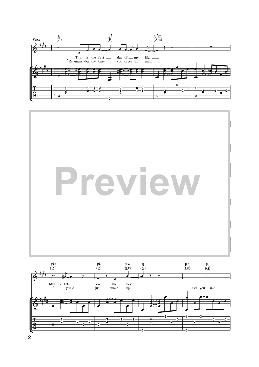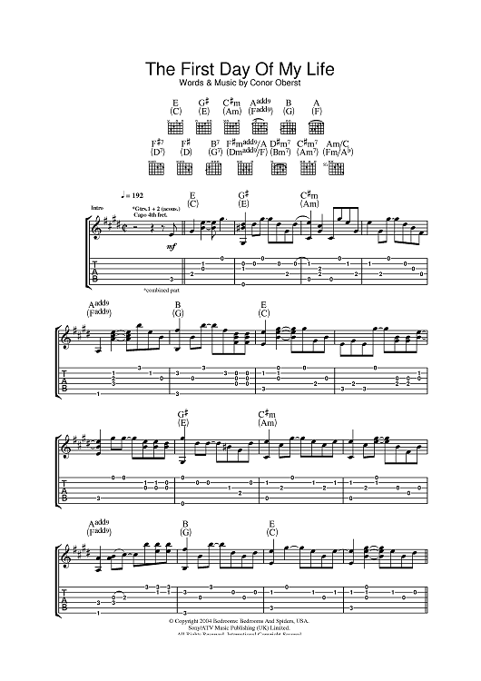Digital Sheet Music for First Day Of My Life by Bright Eyes, Conor Oberst scored for Guitar Tab; id:385619