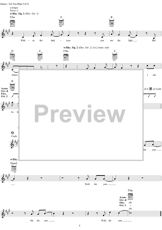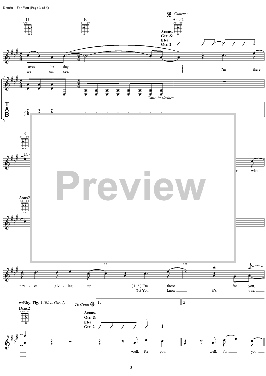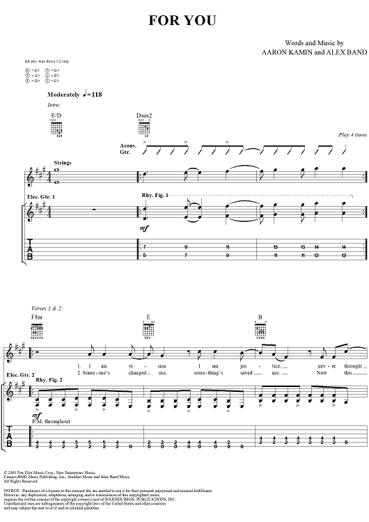 Digital Sheet Music for For You by The Colling, Aaron Kamin, Alex Band scored for Guitar Tab/Vocal; id:297325