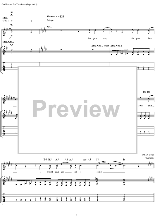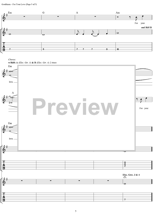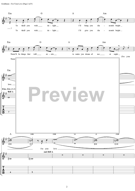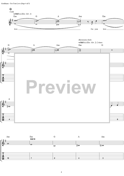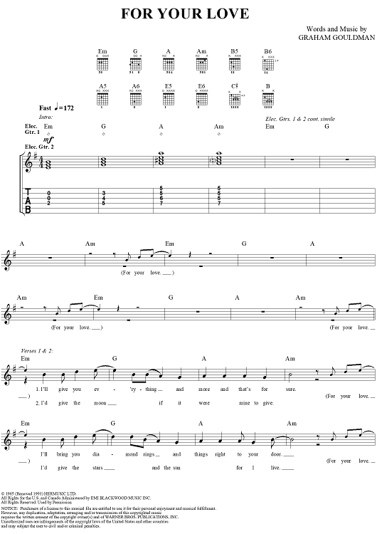 Digital Sheet Music for For Your Love by Graham Gouldman, Yardbirds scored for Guitar Tab/Vocal; id:304225