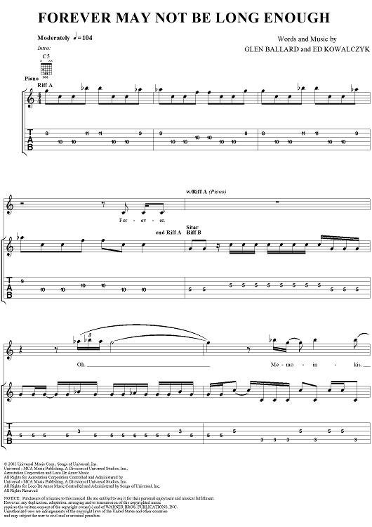 "Forever May Not Be Long Enough" Sheet Music by Live