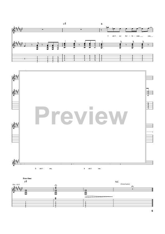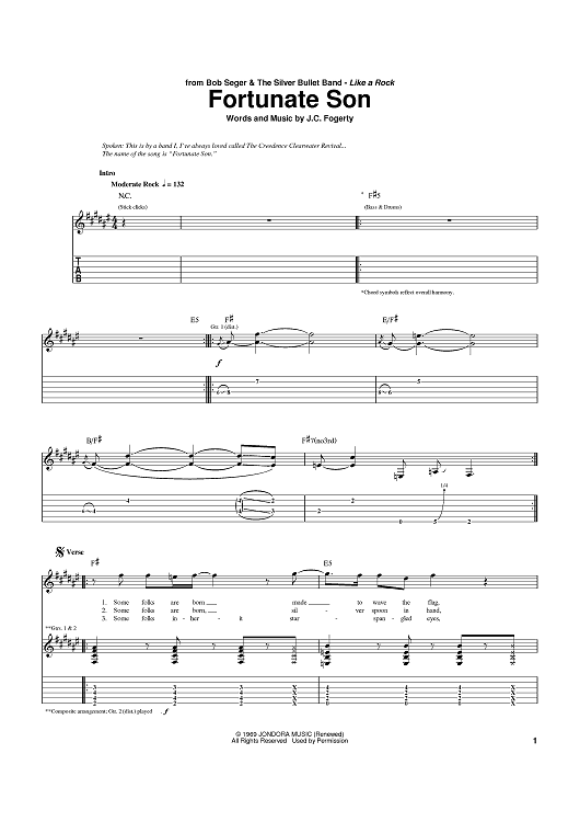 Digital Sheet Music for Fortunate Son by John Fogerty, Creedence Clearwater Revival scored for Guitar Tab; id:387526