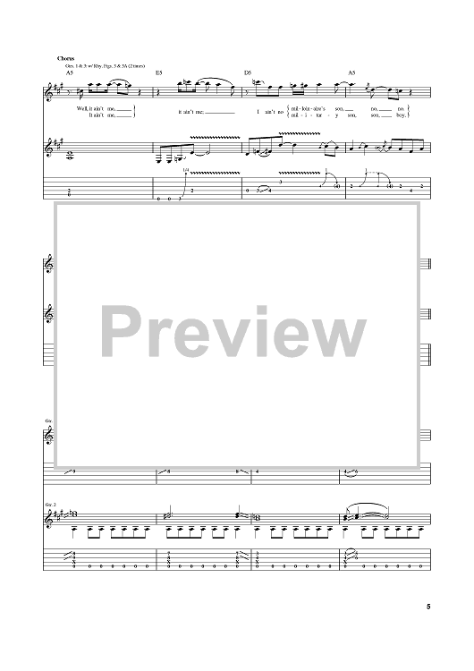 Digital Sheet Music for Fortunate Son by John Fogerty, Creedence Clearwater Revival scored for Guitar Tab; id:389476