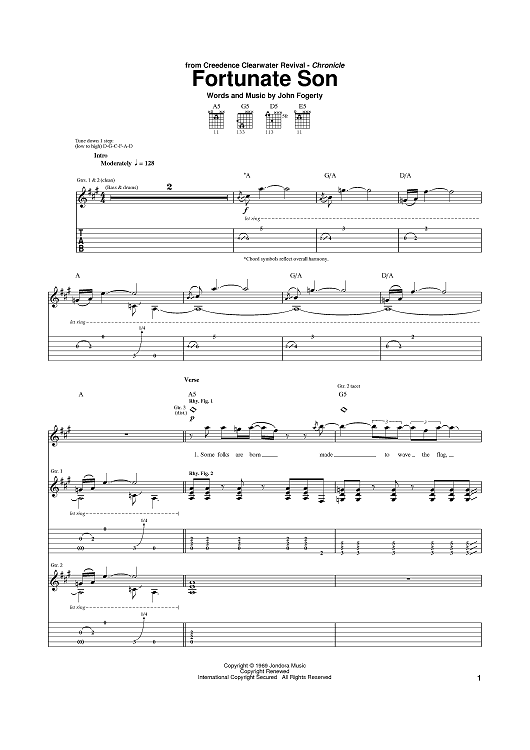 "Fortunate Son" Sheet Music by Creedence Clearwater Revival