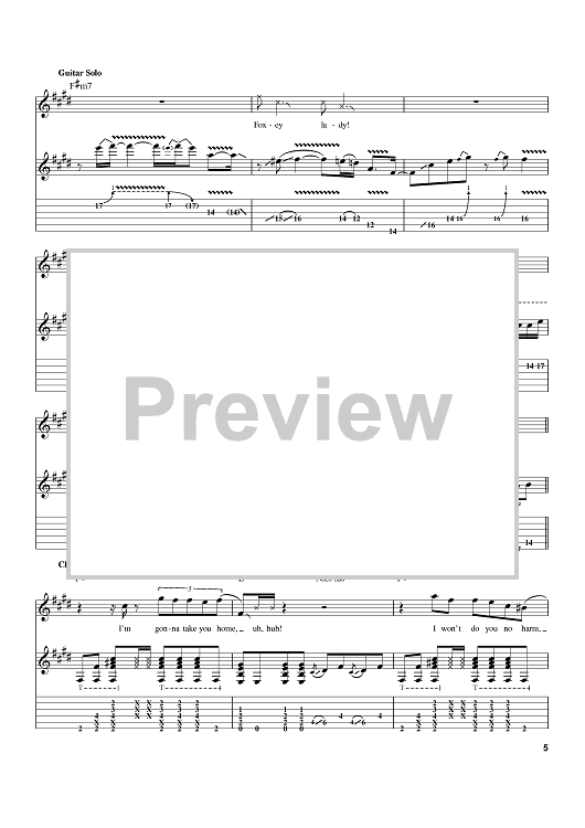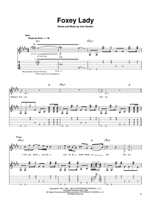 "Foxey Lady" Sheet Music by Jimi Hendrix