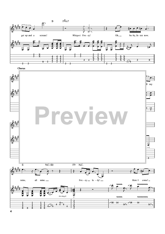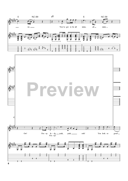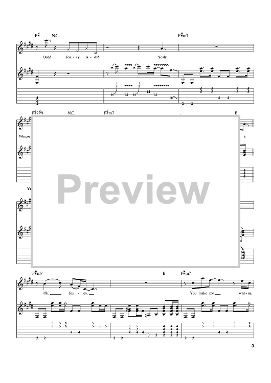 Digital Sheet Music for Foxey Lady by Jimi Hendrix scored for Guitar Tab; id:388209