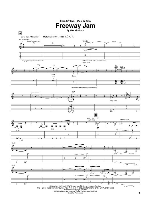 Digital Sheet Music for Freeway Jam by Jeff Beck, Max Middleton scored for Guitar Tab; id:383075