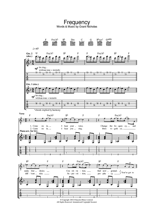 Digital Sheet Music for Frequency by Feeder, Grant Nicholas scored for Guitar Tab; id:383410
