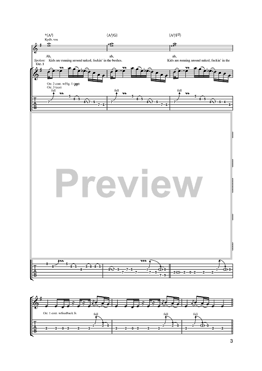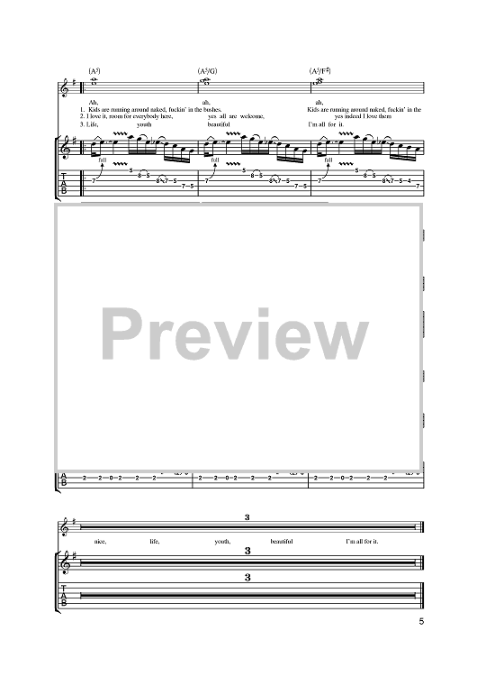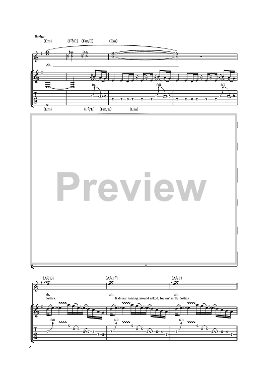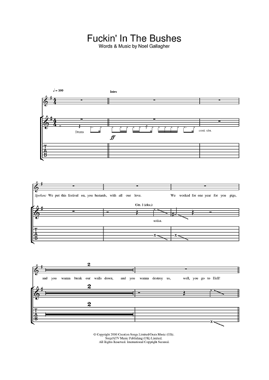 Digital Sheet Music for Fuckin' In The Bushes by Noel Gallagher, Oasis scored for Guitar Tab; id:385701