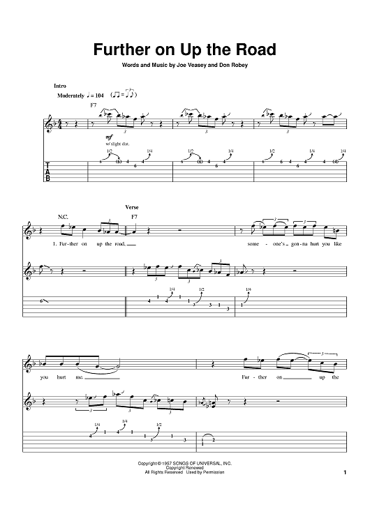 Digital Sheet Music for Further On Up The Road by Jeff Beck, Joe Veasey, Don Robey, Bobby "Blue" scored for Guitar Tab; id:389137