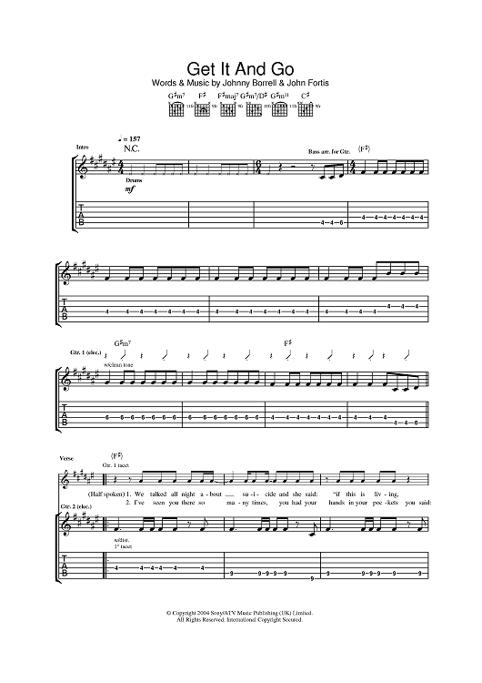 Digital Sheet Music for Get It And Go by Johnny Borrell, Razorlight scored for Guitar Tab; id:385710