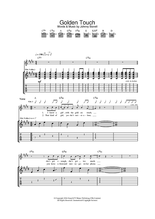 Digital Sheet Music for Golden Touch by Johnny Borrell, Razorlight scored for Guitar Tab; id:382654