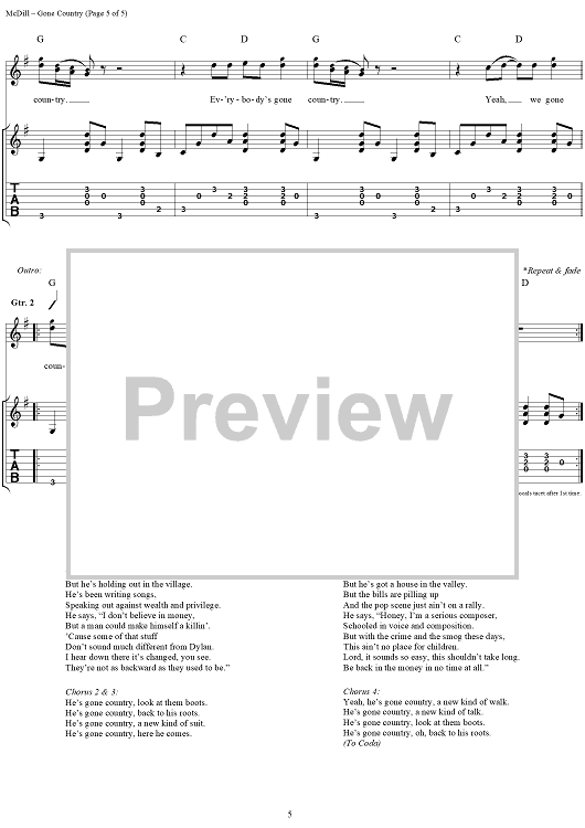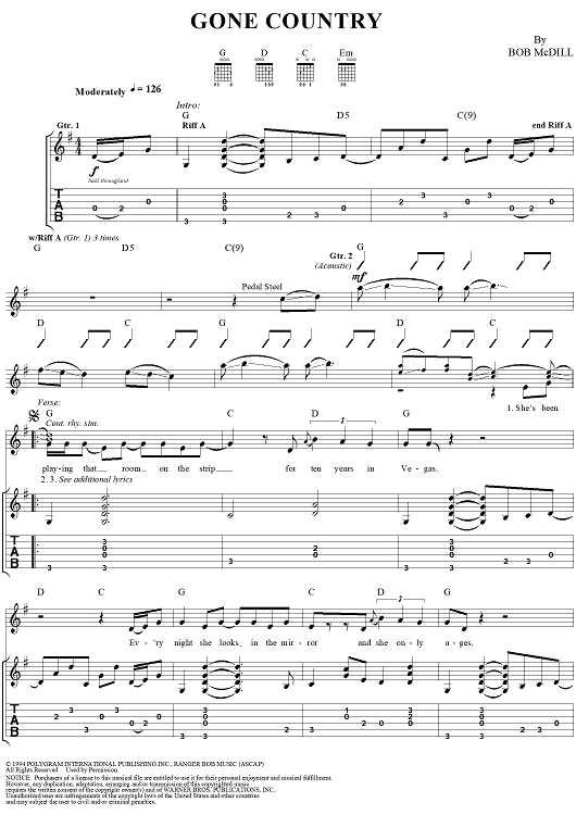 "Gone Country" Sheet Music by Al Jackson Jr