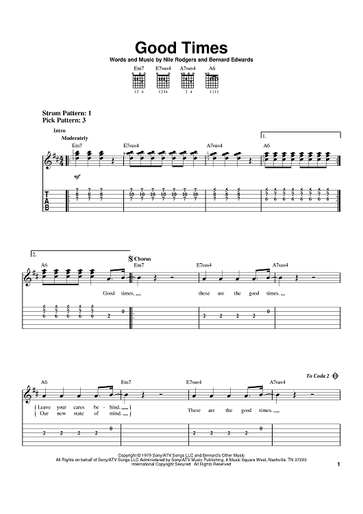 Digital Sheet Music for Good Times by Nile Rodgers, Bernard Edwards, Chic scored for Easy Guitar Tab; id:387942