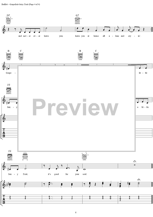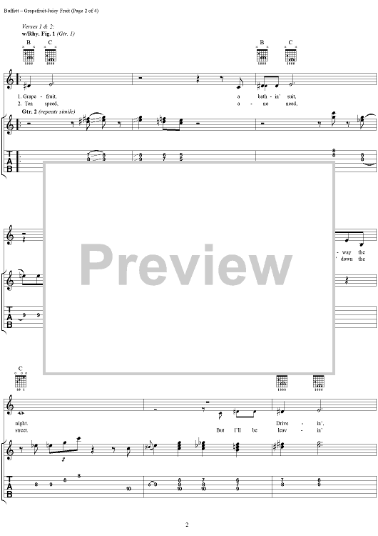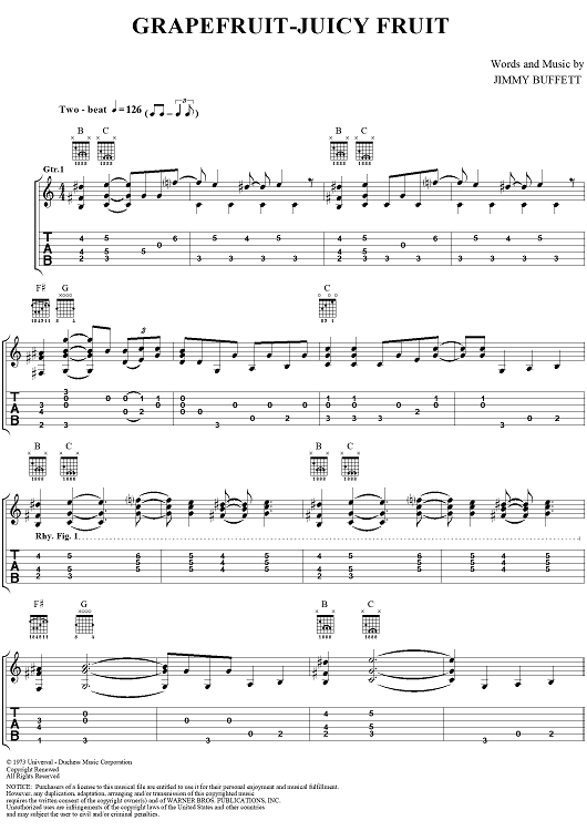 Digital Sheet Music for Grapefruit-Juicy Fruit by Mike Taylor, Jimmy Buffett scored for Guitar Tab/Vocal; id:284345