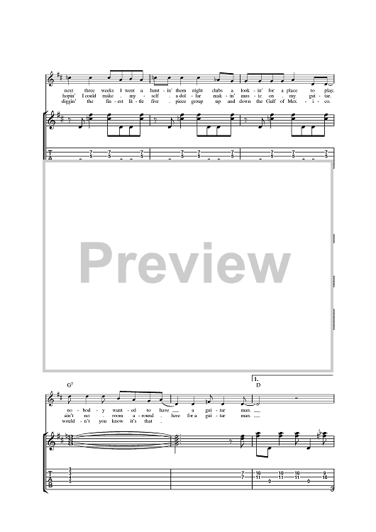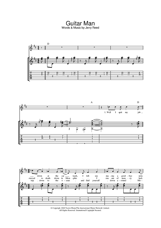Digital Sheet Music for Guitar Man by Elvis Presley, Jerry Reed scored for Guitar Tab; id:384025