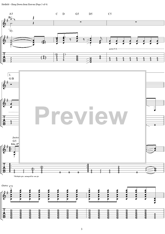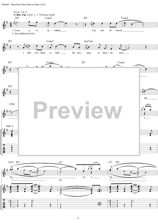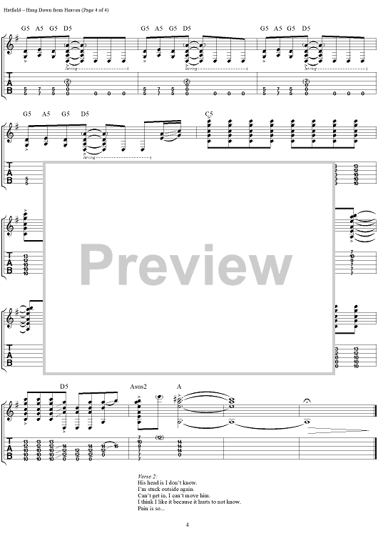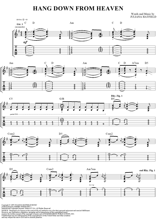 Digital Sheet Music for Hang Down from Heaven by Juliana Hatfield scored for Guitar Tab/Vocal; id:241874