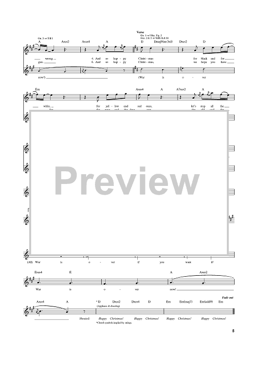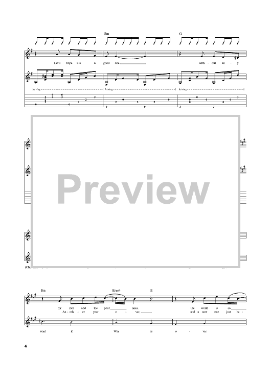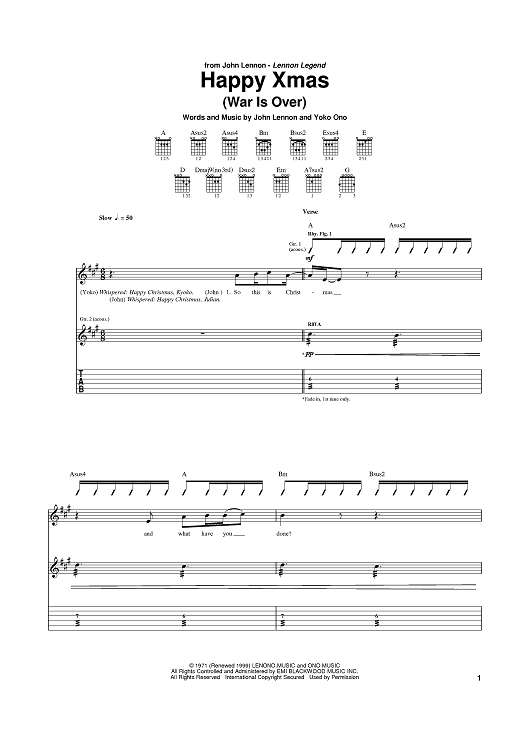 Digital Sheet Music for Happy Xmas (War Is Over) by John Lennon, Yoko Ono Lennon scored for Guitar Tab; id:388273