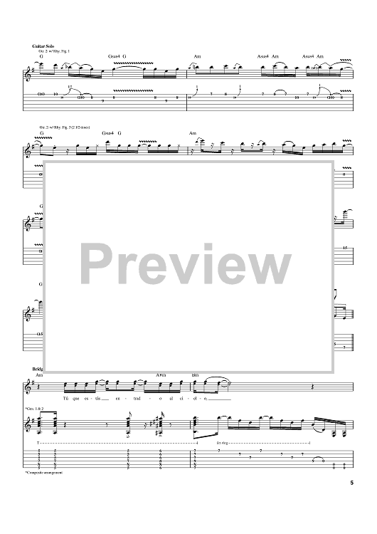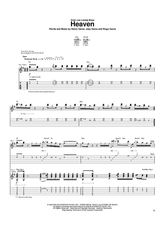 Digital Sheet Music for Heaven by Henry Garza, Joey Garza, Ringo Garza, Los Lonely Boys scored for Guitar Tab; id:390069