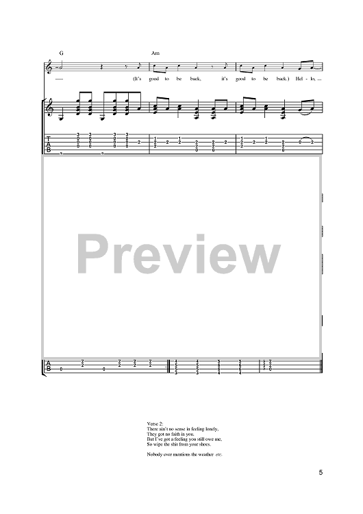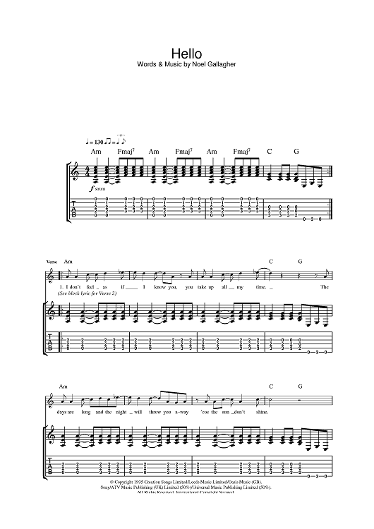 Digital Sheet Music for Hello by Noel Gallagher, Oasis scored for Guitar Tab; id:385831