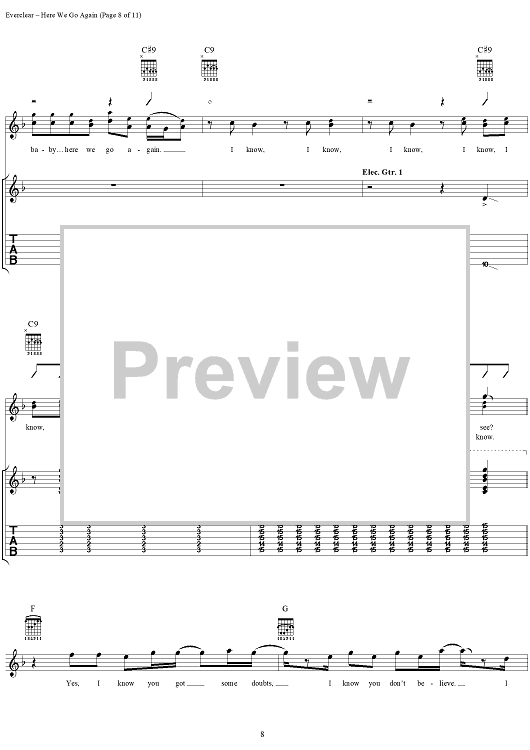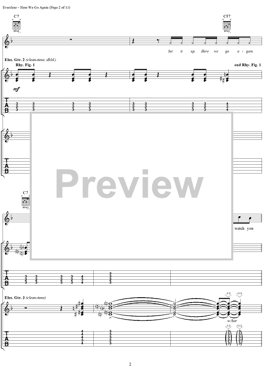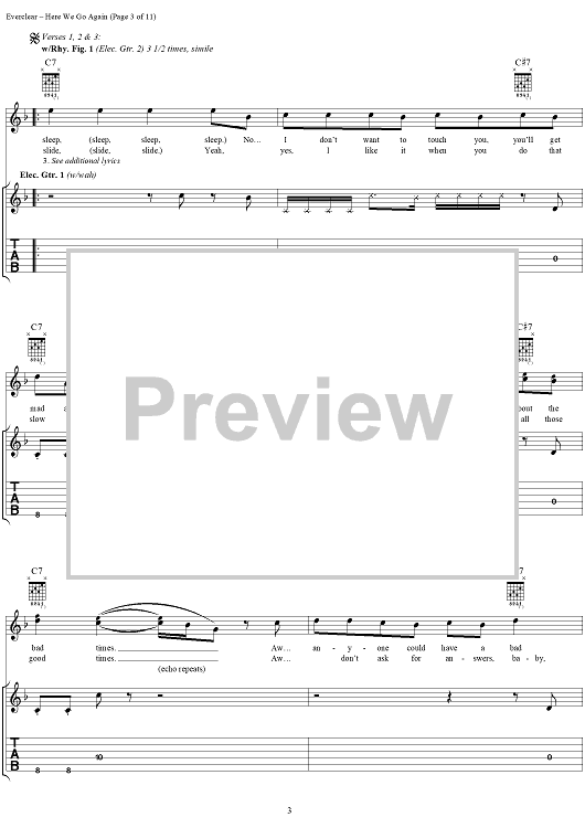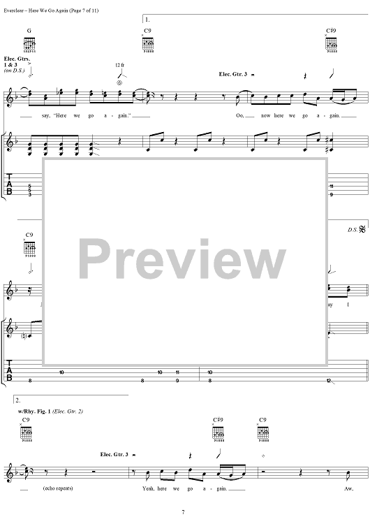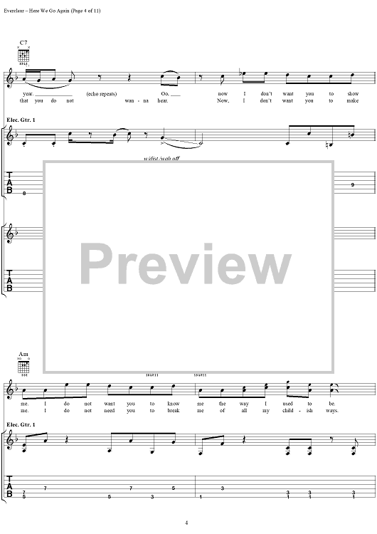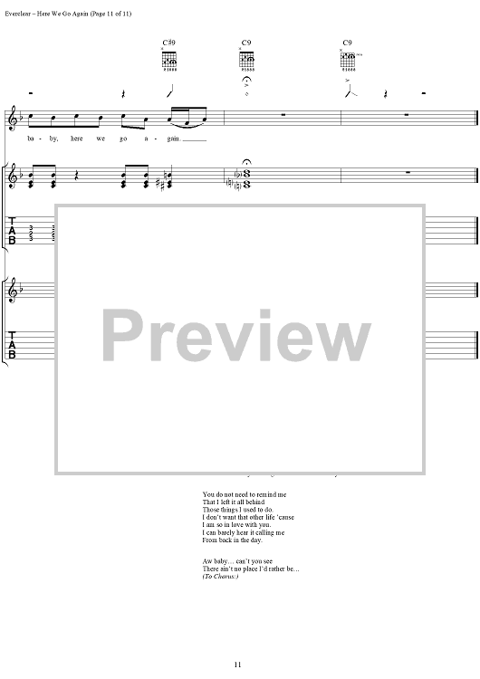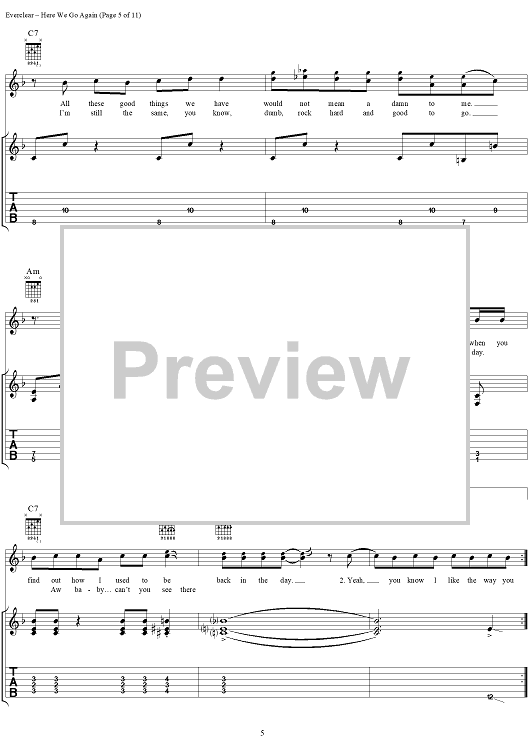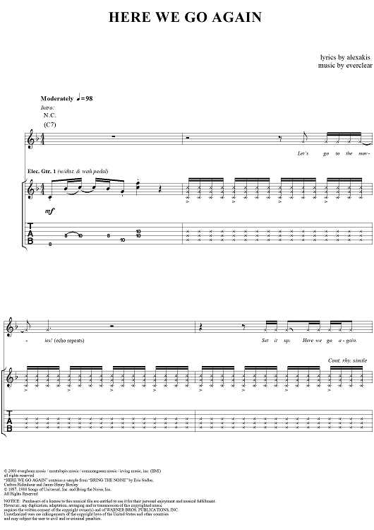 Digital Sheet Music for Here We Go Again by Everclear, Art Alexakis scored for Guitar Tab/Vocal; id:286853