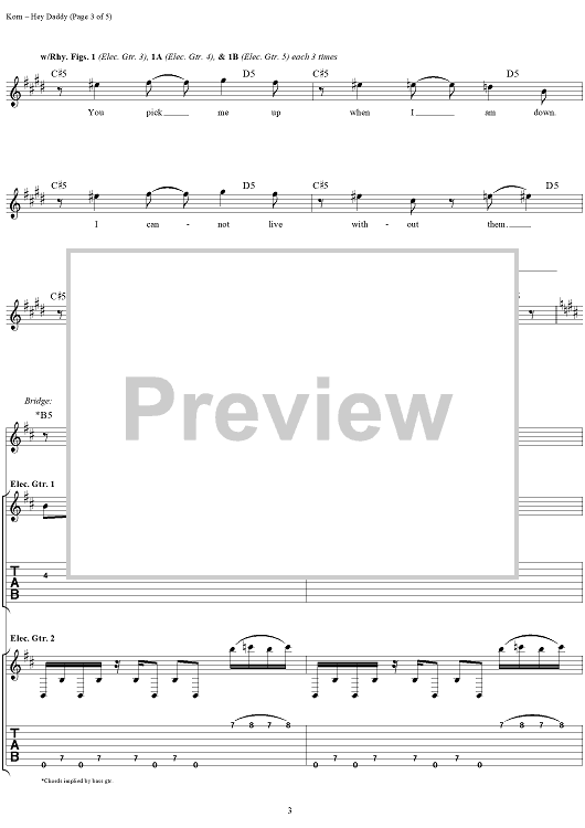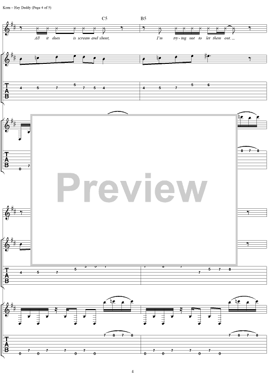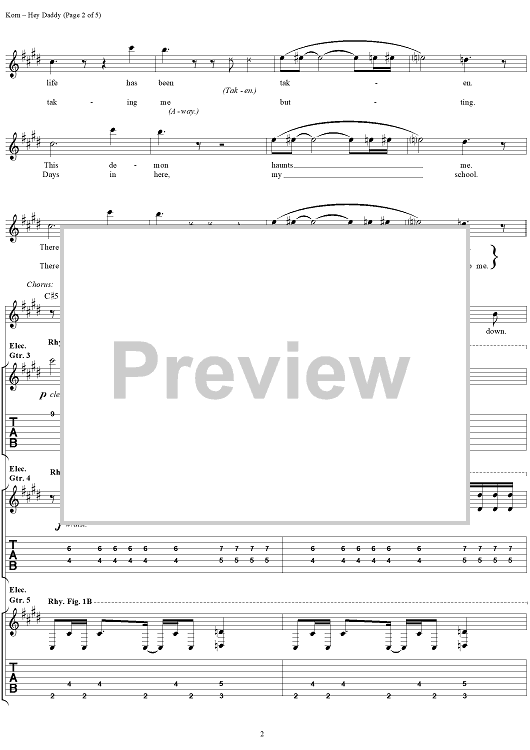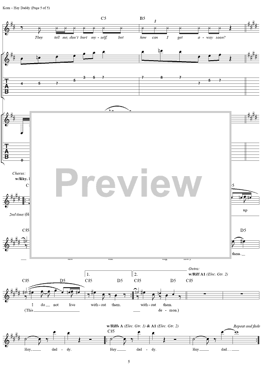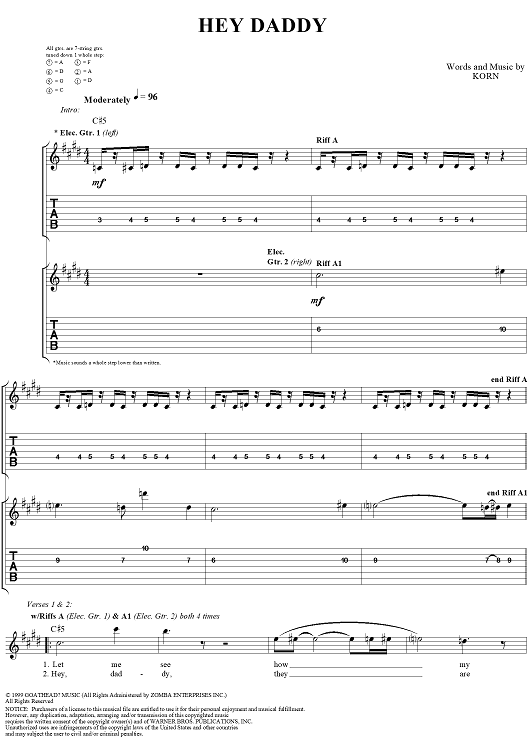 Digital Sheet Music for Hey Daddy by Korn scored for Guitar Tab/Vocal; id:206913