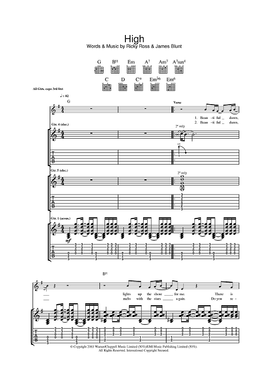 Digital Sheet Music for High by James Blunt, Ricky Ross scored for Guitar Tab; id:387322
