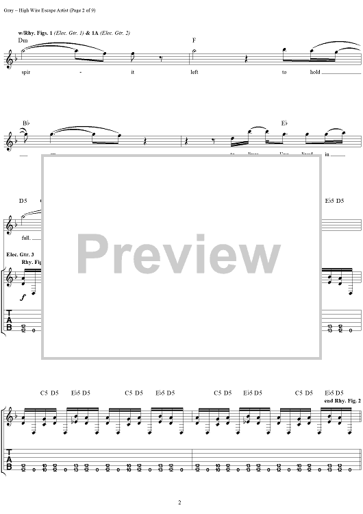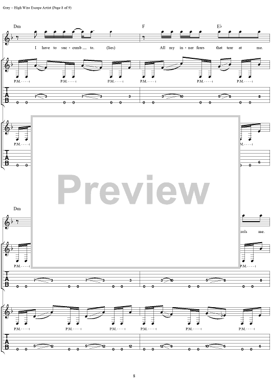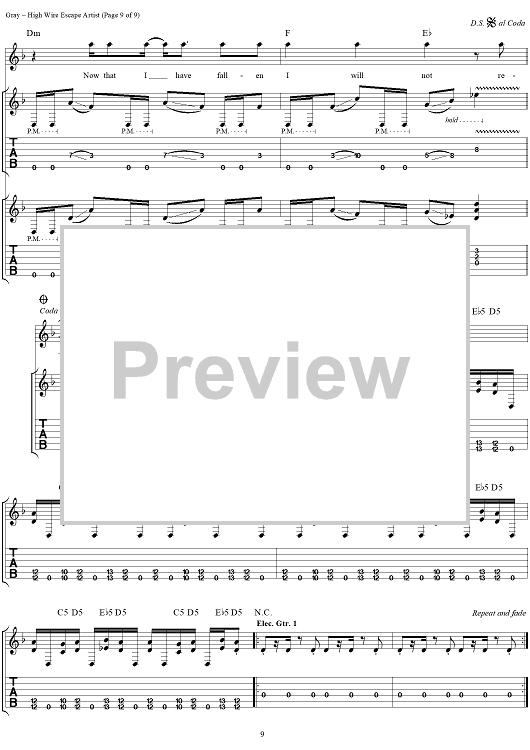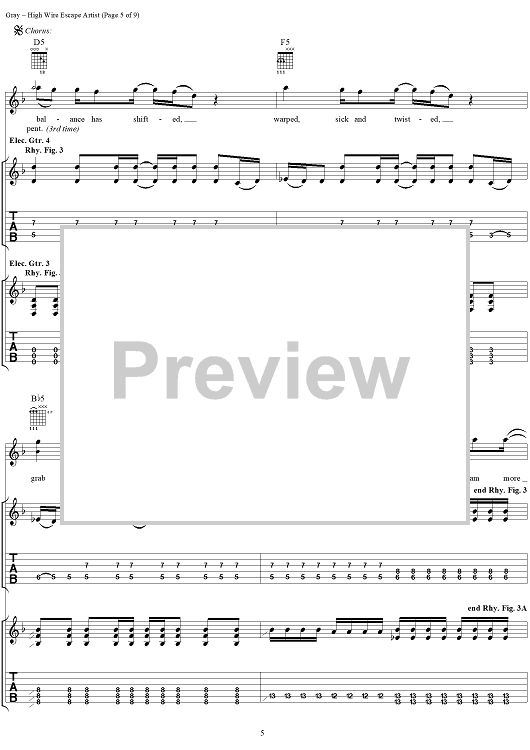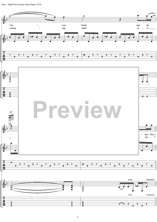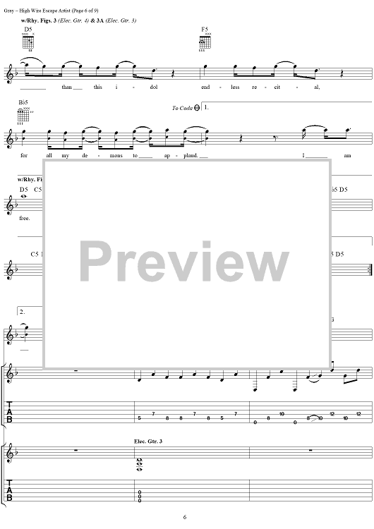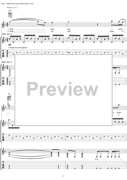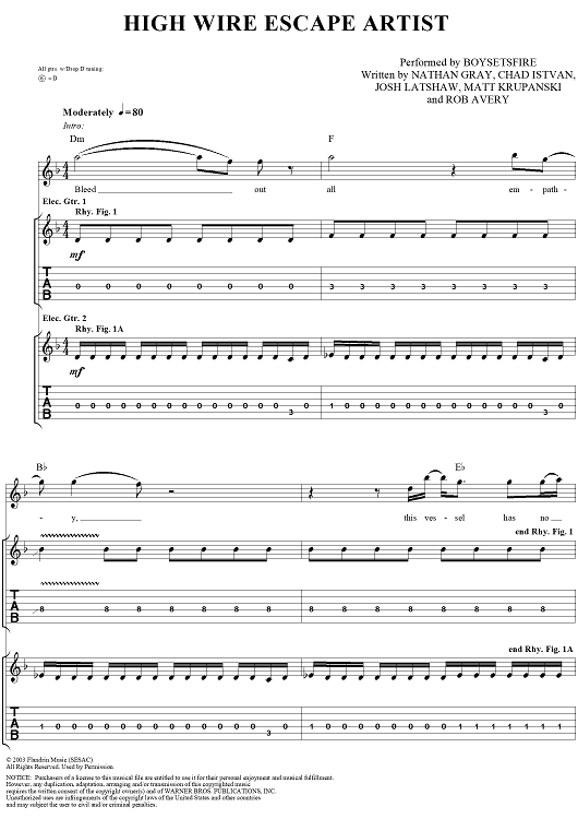 Digital Sheet Music for High Wire Escape Artist by Boysetsfire, Nathan Gray, Chad Istvan, Josh Latshaw, Matt Krupansky, Rob Avery scored for Guitar Tab/Vocal; id:297326