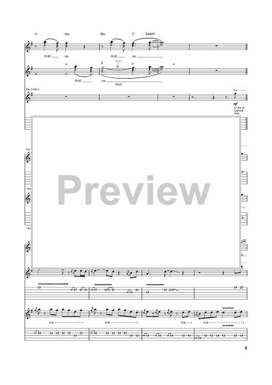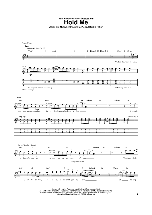 Digital Sheet Music for Hold Me by Fleetwood Mac, Christine McVie, Robbie Patton scored for Guitar Tab; id:384417