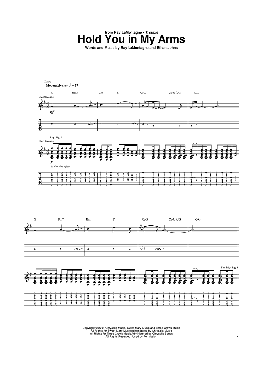 Digital Sheet Music for Hold You In My Arms by Ethan Johns, Ray LaMontagne scored for Guitar Tab; id:388926