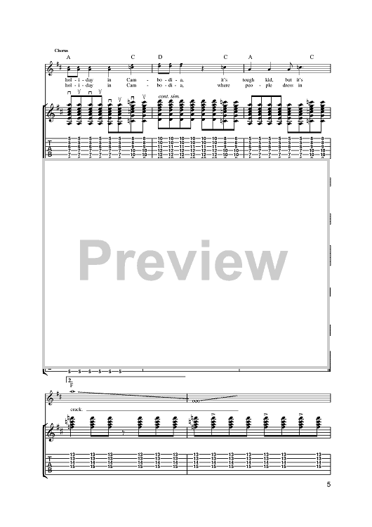 "Holiday In Cambodia" Sheet Music by Dead Kennedys