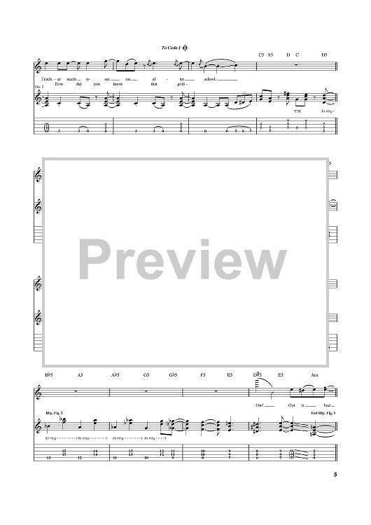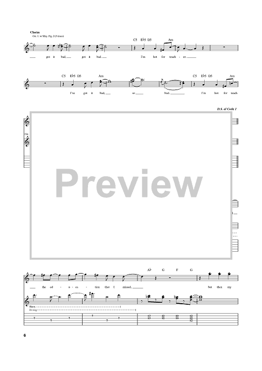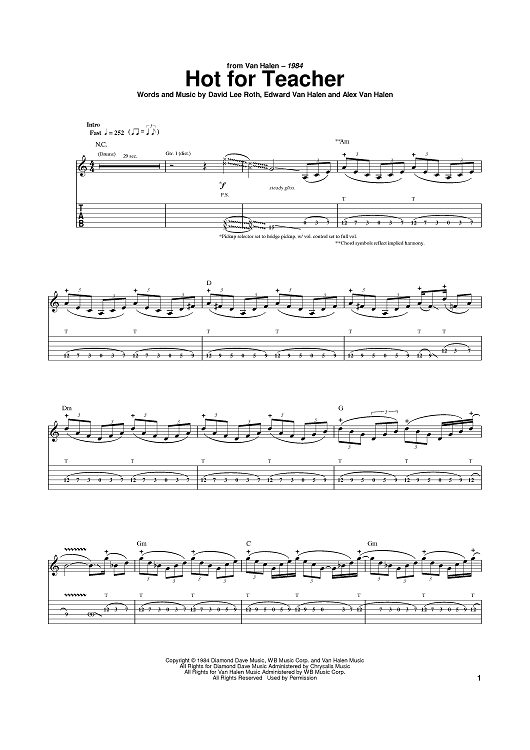 Digital Sheet Music for Hot For Teacher by Eddie Van Halen, David Lee Roth, Alex Van Halen, Van Halen scored for Guitar Tab; id:385956