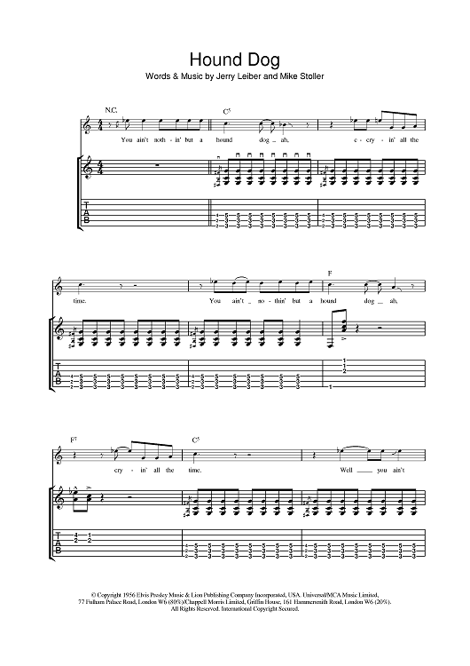 Digital Sheet Music for Hound Dog by Elvis Presley scored for Guitar Tab; id:375745