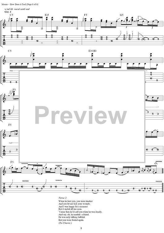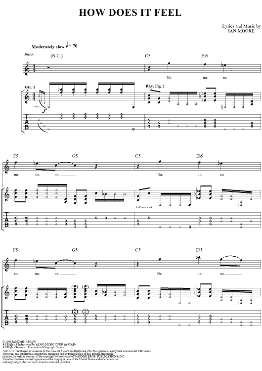 Digital Sheet Music for How Does It Feel by Ian Moore scored for Guitar Tab/Vocal; id:252498