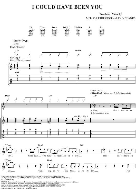 "I Could Have Been You" Sheet Music by Melissa Etheridge