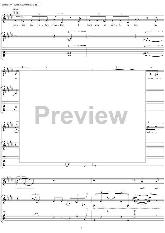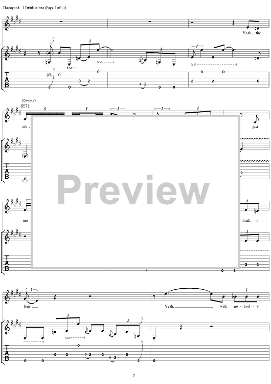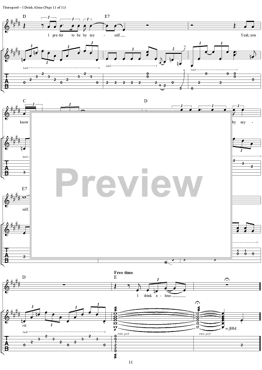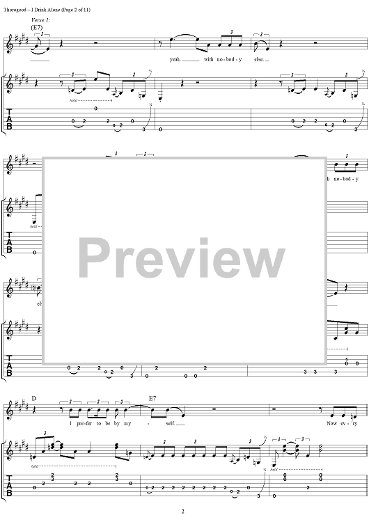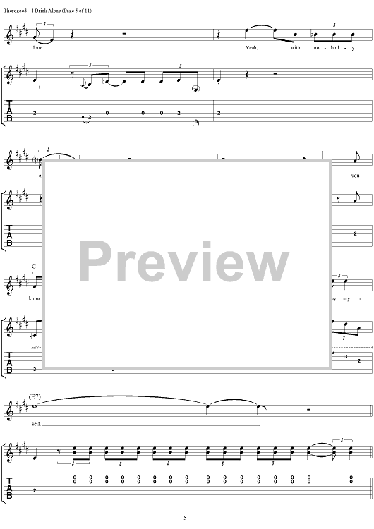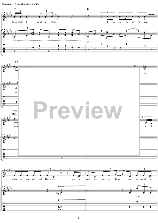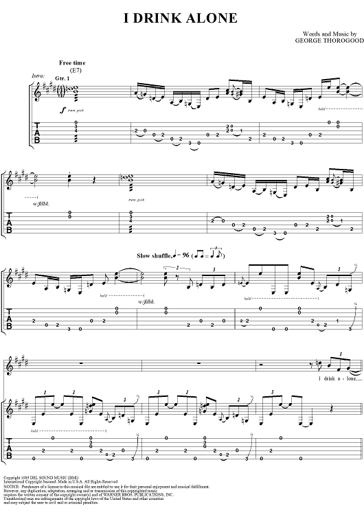 Digital Sheet Music for I Drink Alone by Lonesome George scored for Guitar Tab/Vocal; id:260200